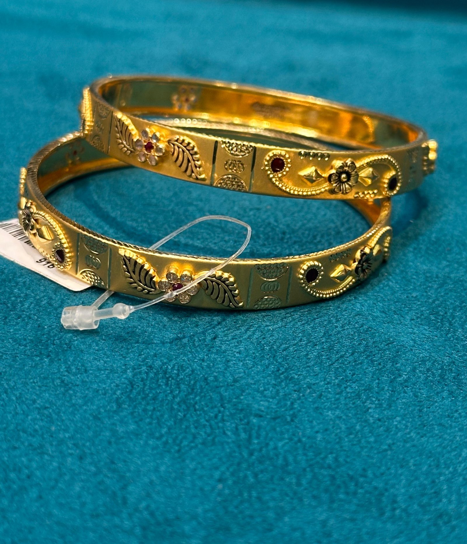 Bangles are circular in shape, and, unlike other bracelets, are not flexible. The word is derived from Hindi bungri (glass).[3] They are made of numerous precious as well as non-precious materials such as gold, silver, platinum.